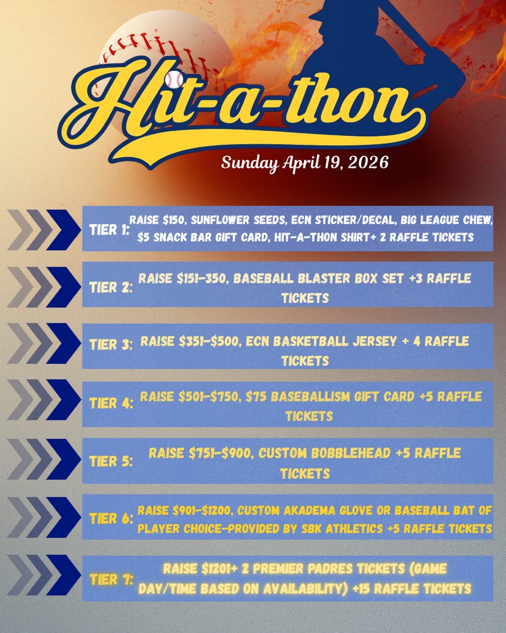 Raffle tickets earned through fundraising will go toward the Hit-A-Thon raffle prize.